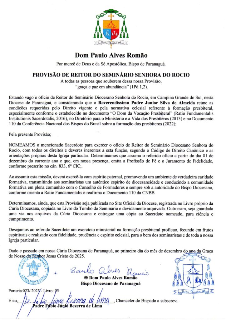Pe. Júnior Silva de Almeida Categoria: Nomeações01/12/2025Navegação de post:AnteriorPost anterior:AdministradorPróximoPróximo post:Nomeações